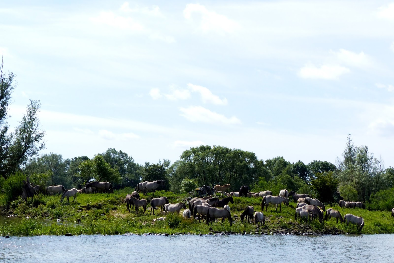 We hebben nieuwe hoop. Helaas komt die niet uit, want wat we ook proberen, er komt geen enkele aanbeet meer. Ondertussen is er ook nog een hengel gesneuveld en is er kunstaas verloren gegaan. Niet iets om vrolijk van te worden. Toch laten we de stemming er niet onder lijden en genieten van alles wat er wel is. Zoals de gigantisch groep Konikpaarden op de oever. Eigenlijk kijken we meer uit naar visdiefjes die samen gaan duiken op visjes die naar boven worden gejaagd. Dit gebeurt echter niet.