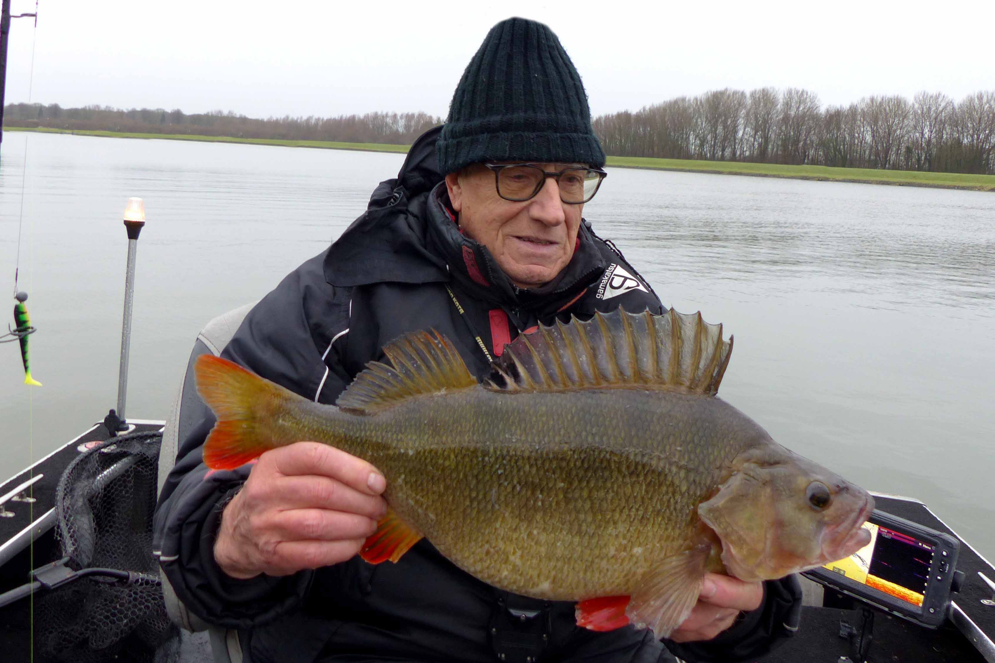 | Wat een verschrikkelijk grote baars is dit toch! De dag is direct al geslaagd. |